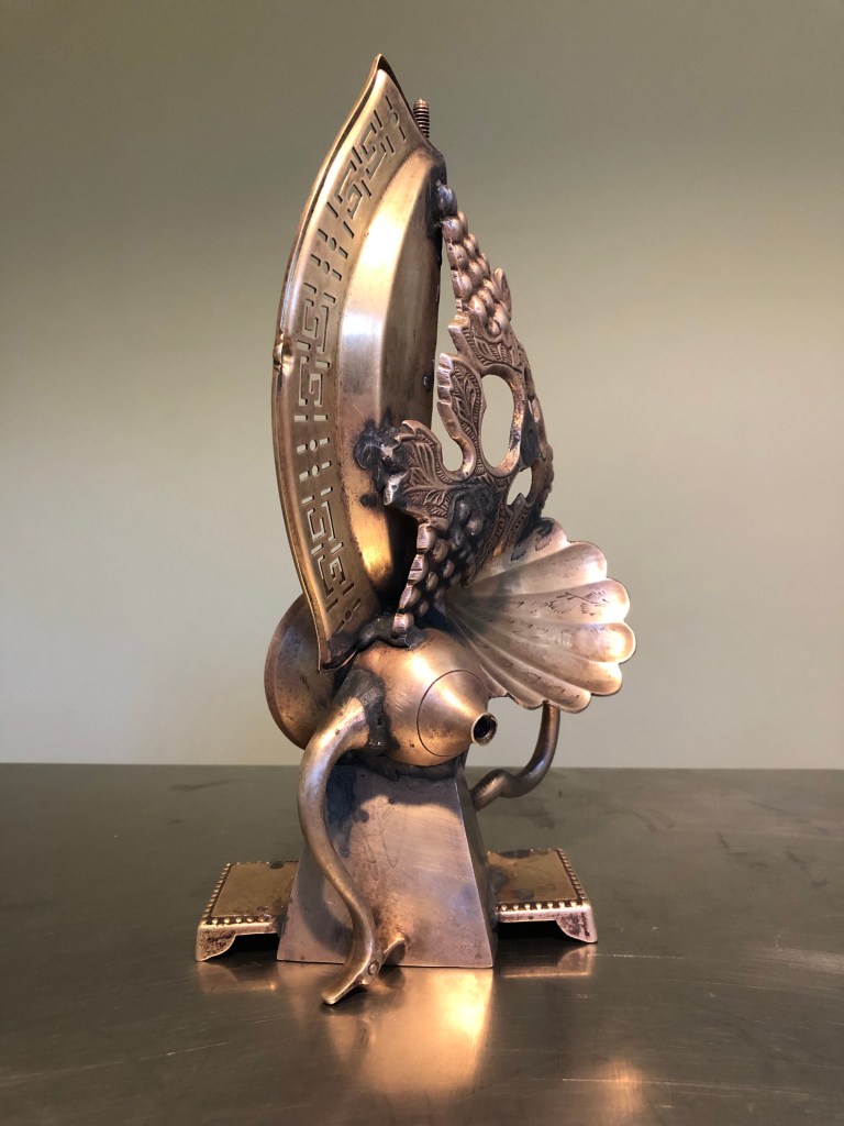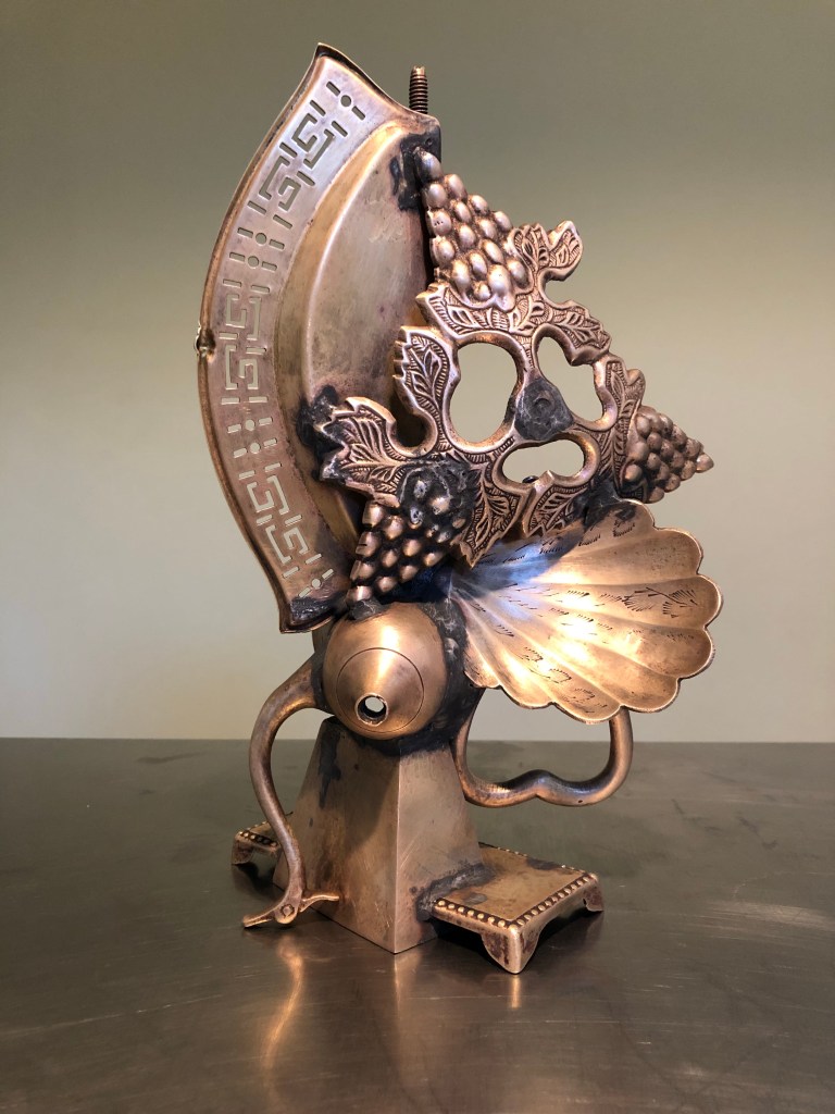 A Muse of Fire Posted on : 2021: 2024 by MC in Brass Assemblage Soldered brass, 11.5 x 9.5 x 5.5, 2021. Share this: Click to share on X (Opens in new window) X Click to share on Facebook (Opens in new window) Facebook Like Loading...