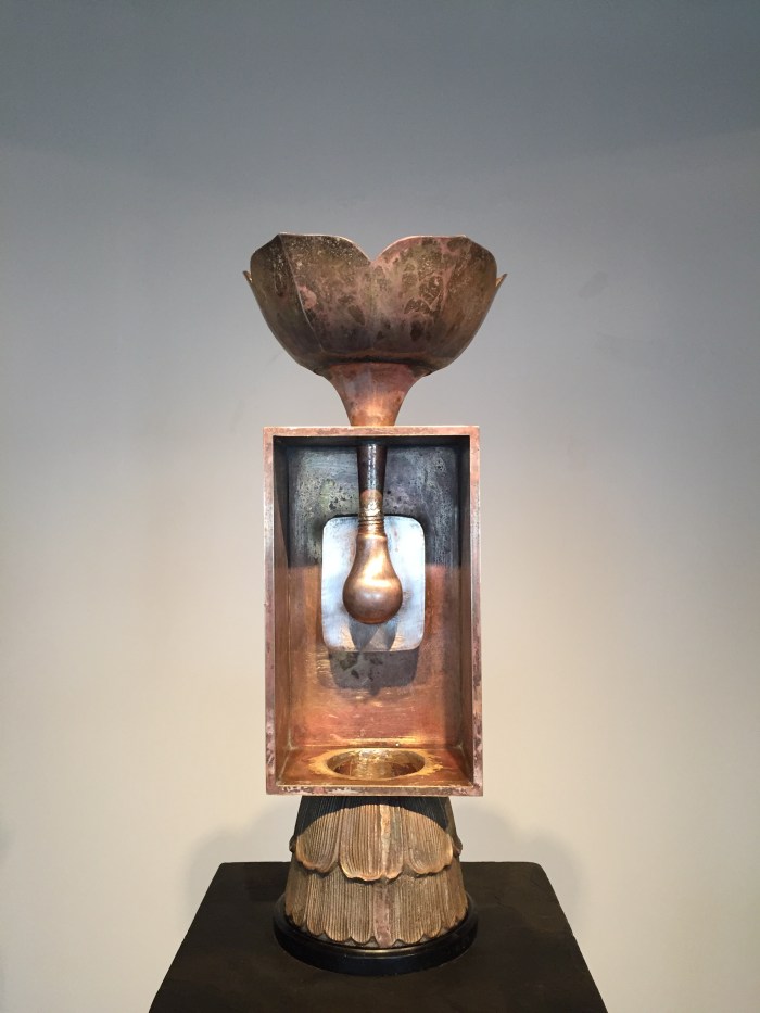 Soldered brass, wood, 23 x 9 x 9, 2017. Created in residence at the Hambidge Center, USA.