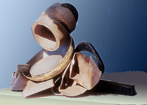 Welded steel, brass, 58 x 23 x 11, 2003.