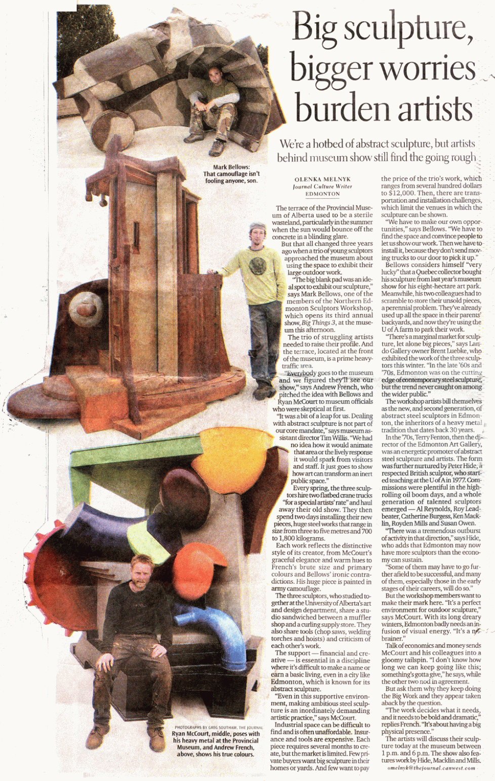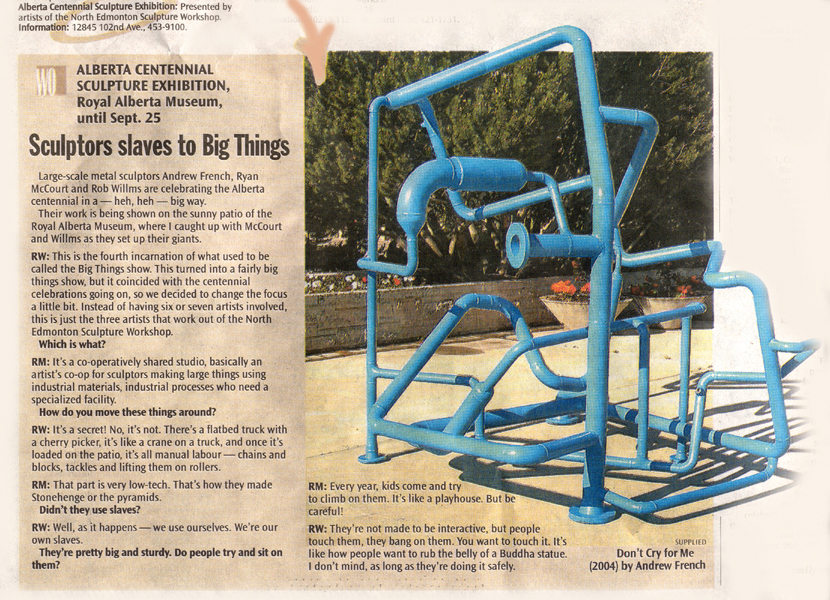 Olenka Melnyk, “Big Sculpture, Bigger Worries Burden Artists”, Edmonton Journal, July 12.