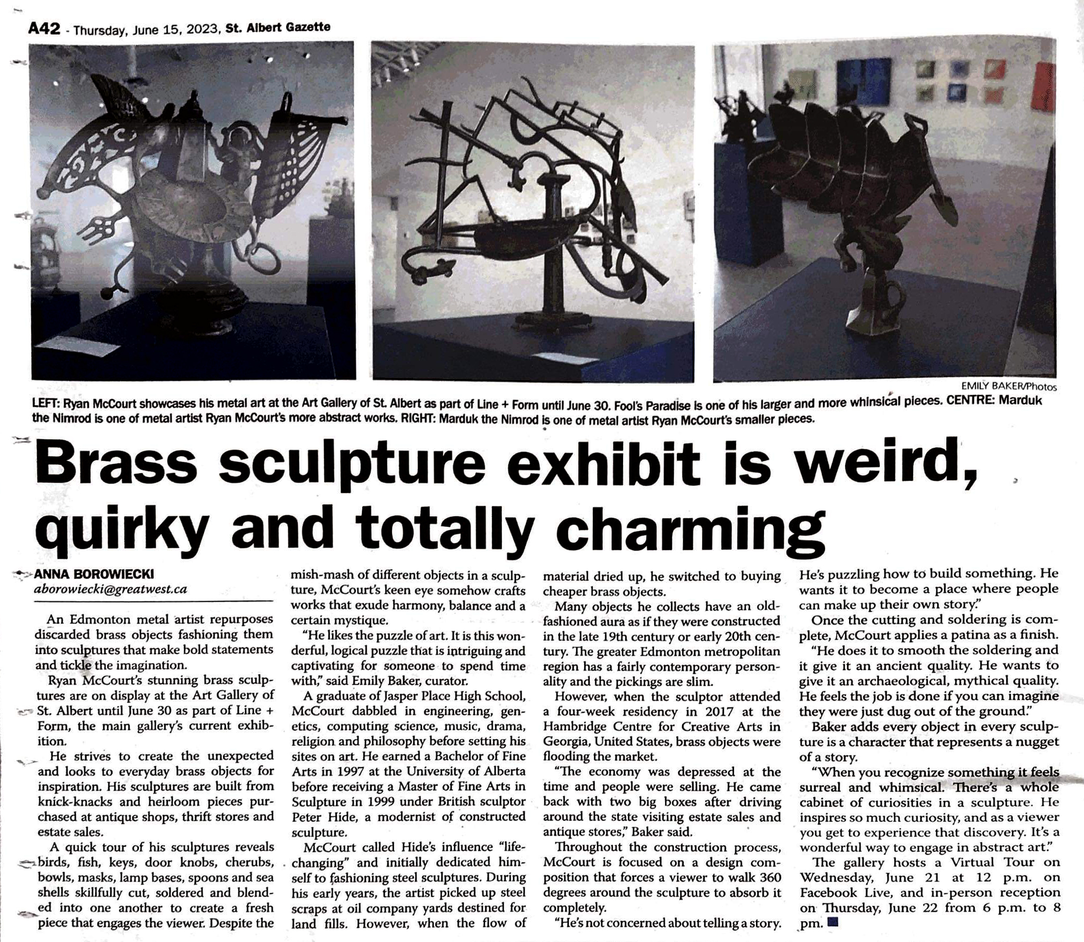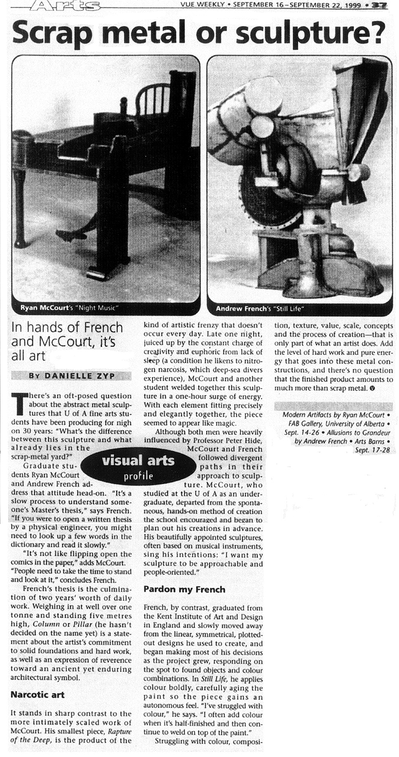 Danielle Zyp, “Scrap Metal Or Sculpture?”, Vue Weekly, Issue 206, September 16.