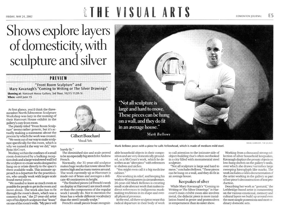 Gilbert Bouchard, “Shows Explore Layers Of Domesticity, With Sculpture And Silver”, Edmonton Journal, May 24.