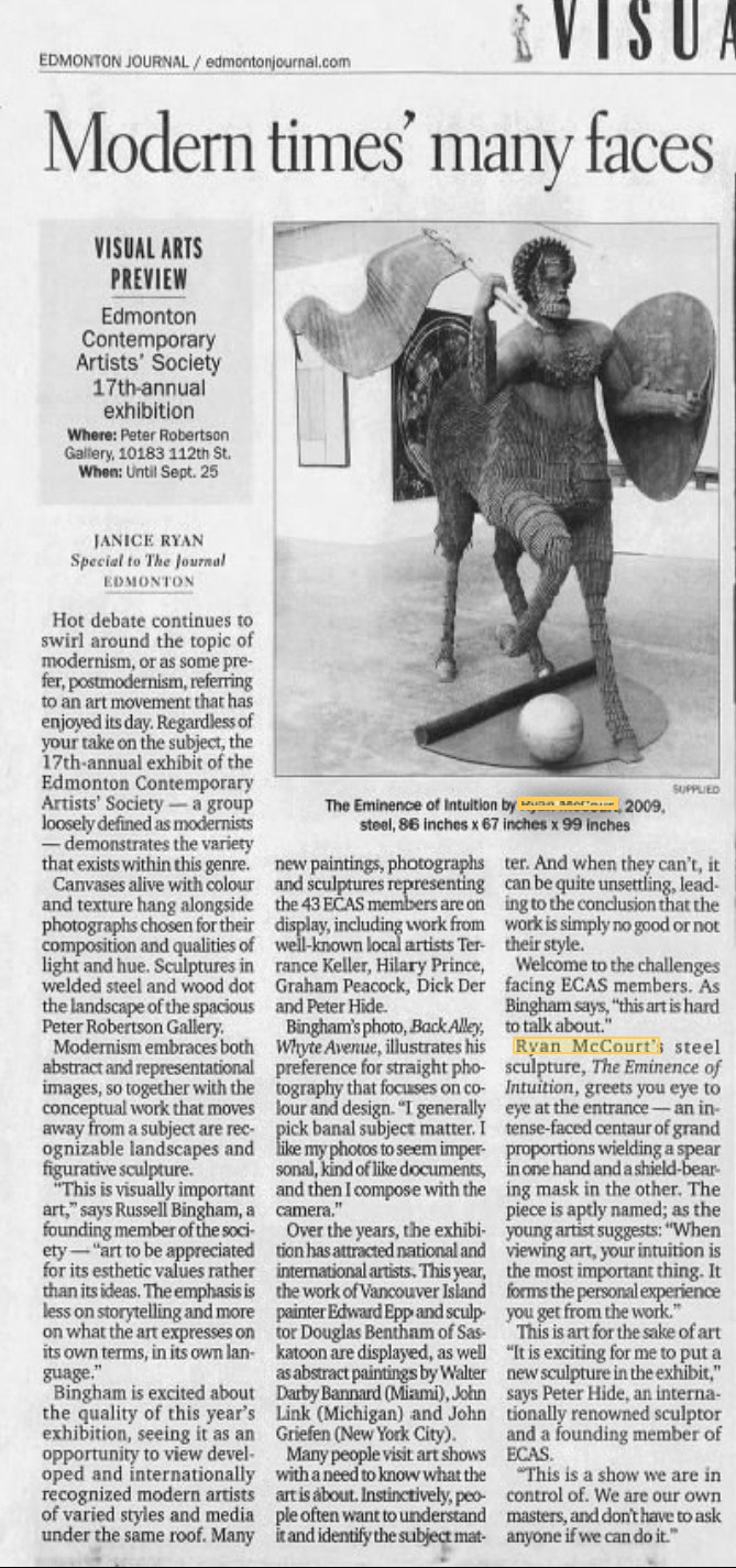 Janice Ryan, “Big Spaces For Big Sculptures”, Edmonton Journal, November 4.