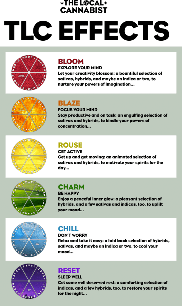 “TLC Effects” is a system conceived and designed to categorize all the various cannabis products into six categories that are both logical and intuitive.