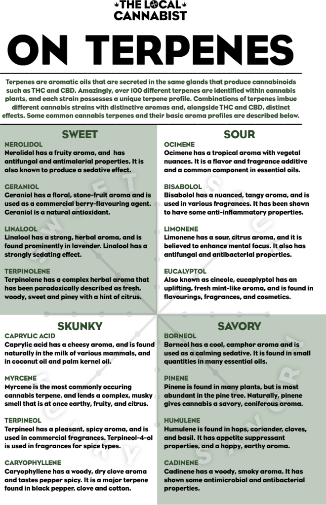 “On Terpenes” gives a comprehensive summary on the nature and characteristics of some of the most frequently encountered terpenes in cannabis, according to the THC Farmer Cannabis Cultivation Network.