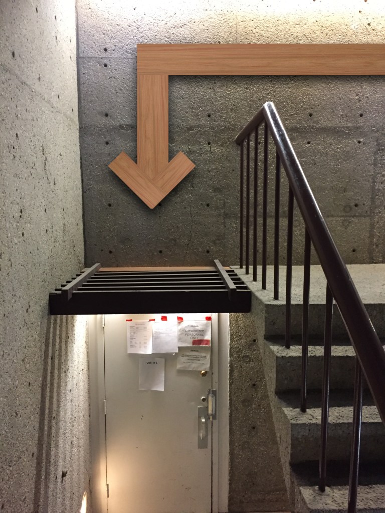 My simple stairway signage design is shown in these mock-up photo-illustrations.